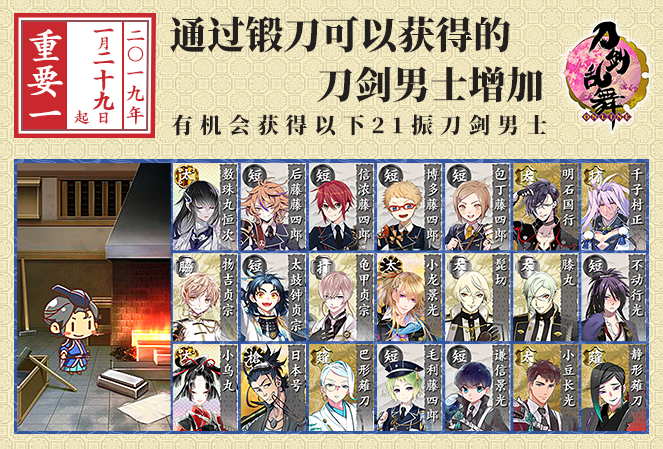 一、通过 锻 刀 可以获得的刀剑男士增加