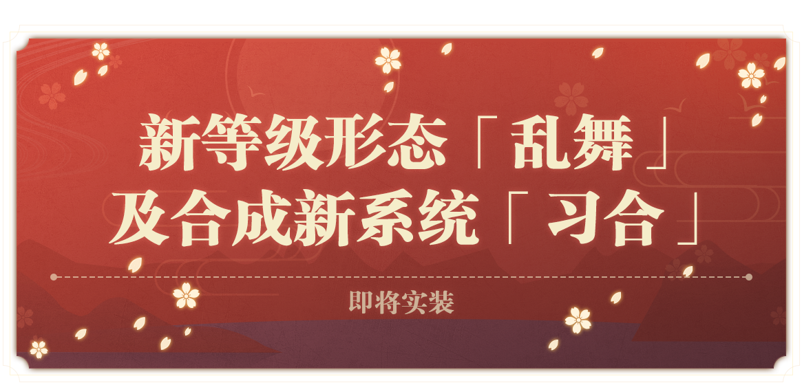 《刀剑乱舞-ONLINE-》中文版预计将在2019年3月实装新等级形态「乱舞」以及合成新系统「习合」。更多详情请查看官网公告“新等级形态「乱舞」实装公告 第一报”。