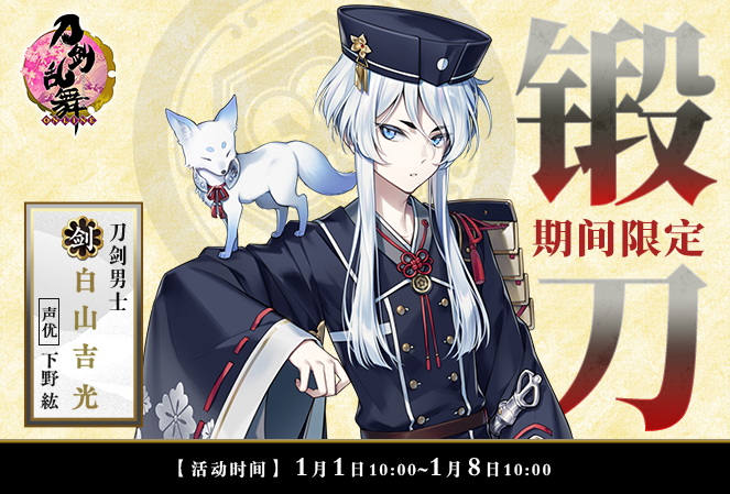 【活动详情】刀剑男士「剑·白山吉光」限时登场。活动期间,审神者有机会通过锻刀功能获得「剑·白山吉光」。