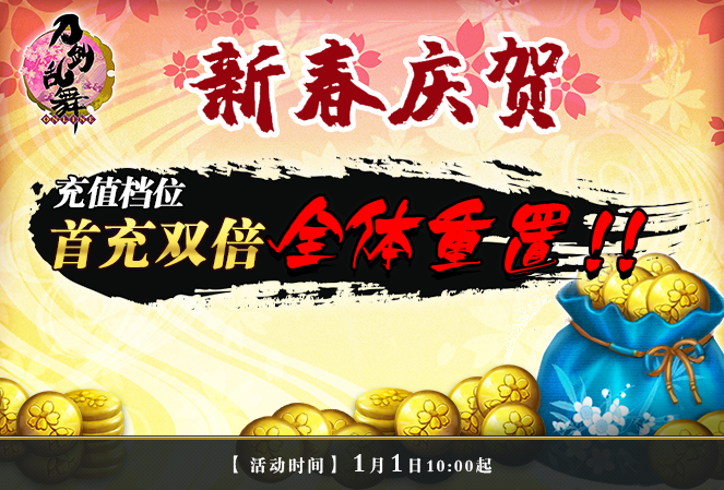 【活动详情】2020年新春近至,中文版三周年庆典也即将到来,为贺迎双喜,1月1日10:00后,游戏内各充值档位首充双倍奖励全体重置,首次充值可获得双倍甲州金奖励!