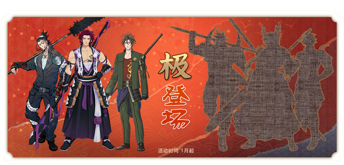 1月起,将开放刀种「枪」的极化。刀剑男士「枪·御手杵」、「枪·蜻蛉切」及「枪·日本号」即将踏上修行之旅。