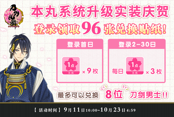 【活动详情】为庆贺本丸系统升级实装,特此开启「兑换贴纸」福利活动!