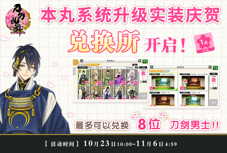 10月23日更新公告 本丸系统升级实装庆贺「兑换所」特别开启 修复时间限时减半