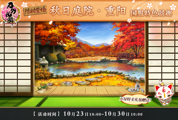 感谢各位审神者对《刀剑乱舞-ONLINE-》中文版的支持。为了让审神者体验更多的游戏内容,本周我们将于10月23日10:00开启下列活动。