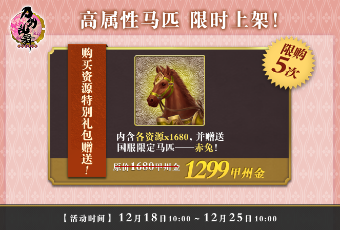 【活动详情】中文版限定高属性马匹资源礼包限时登场万屋。