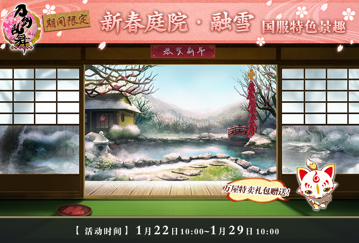 1月22日更新公告 刀剑男士「福岛光忠」登场「战力扩充计划」 「新春庭院·融雪」景趣限时返场