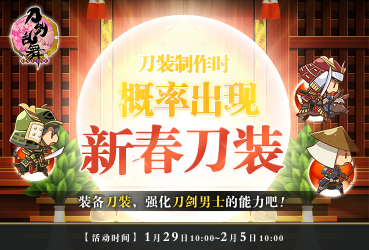 【活动详情】活动期间,审神者进行刀装制作,将有概率获得中文版限定新春特别刀装!